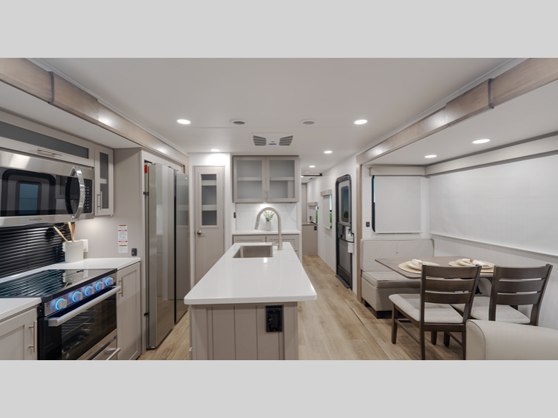 Azdel composite sidewalls are throughout the inside and out to provide you with an RV made to last. The flush slide out floors prevent tripping, and the interior is carpet-free for an easier clean. You will also appreciate industry leading tank sizes, performance running gear, and an OTG Solar Package that will allow you to go off-grid when the adventure calls for it.