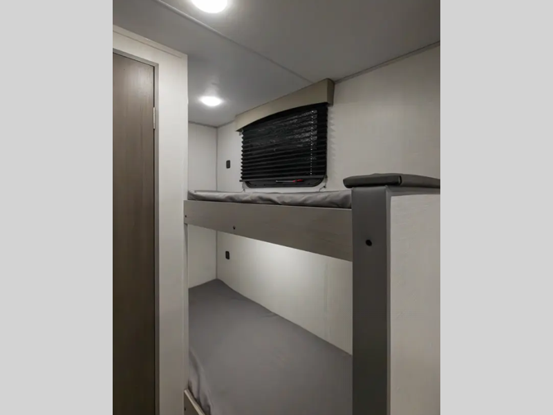 Sleeps 3 Length 17 ft 10 in Ext Width 7 ft Ext Height 10 ft Hitch Weight 330 lbs GVWR 3830 lbs Dry Weight 2559 lbs Cargo Capacity 1271 lbs Fresh Water Capacity 27 gals Grey Water Capacity 27 gals Black Water Capacity 27 gals Furnace BTU 20000 btu Number Of Bunks 2 Refrigerator Type 110V Refrigerator Size 3.2 cu ft Cooktop Burners 2 Shower Size 24" x 36" Number of Awnings 1 Water Heater Type Tankless AC BTU 13500 btu Awning Info 9' Power w/LED Light Strip & Adj. Legs Axle Count 1 Shower Type Standard Similar Floorplans