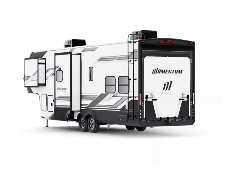 The Grand Design Momentum G-Class toy hauler fifth wheels and toy hauler travel trailers are a lighter series without sacrificing Momentum's ceiling and slide out heights or wide-body platform. Both offer a fuel station with an interior and exterior gauge to keep the fun going wherever you take your toys.
