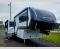 You're going to love every minute spent in this spacious fifth wheel that can sleep four. There is an inviting rear living area with a 72" tri-fold sofa and theater seating across from the televator and fireplace. The chef of your group can whip up dinner on the three burner cooktop or in the 30" residential microwave, and there is a 16 cu. ft. refrigerator that even opens when with the slide out is in. You will also enjoy the kitchen island with a farmhouse sink and roller cover, dual trash bins with a Stow N' Go paper towel holder, plus convenient dog bowls for your furry friends. You can store all your paper goods and snacks in the 84" pantry with adjustable shelving, and there is a hutch for nice dishes plus shoe storage in this model as well. Head to the front master bedroom where you'll find a queen bed with a TV, a large slide out with a wardrobe with drawers, plus a spacious bath.